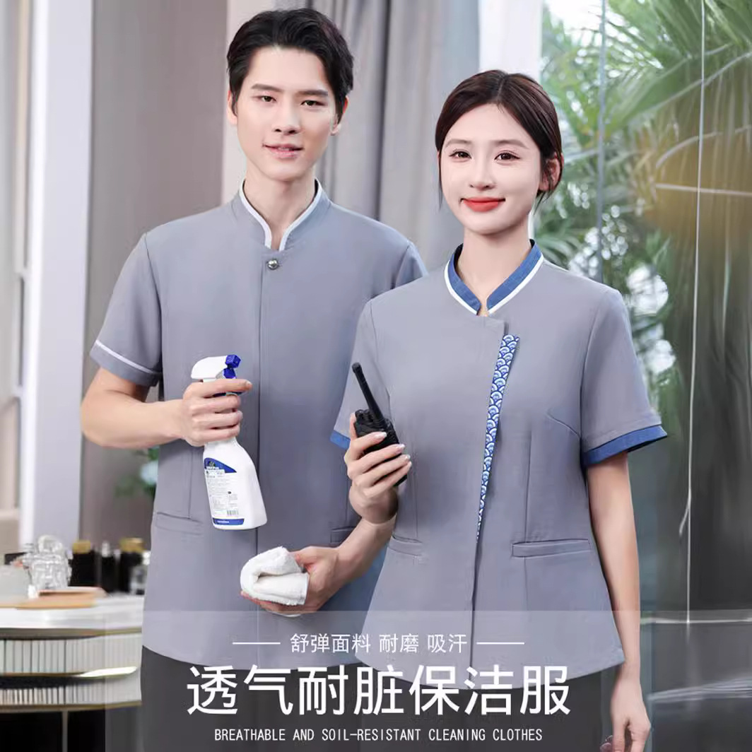 Hotel abu-abu muda membersihkan pakaian kerja lengan pendek ruang tamu hotel mal belanja properti membersihkan pakaian kerja pria dan wanita pembersih musim panas