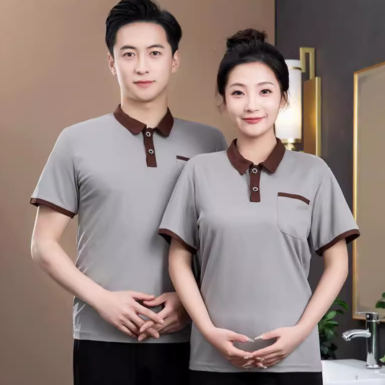 Pakaian kerja pembersih kaus abu-abu lengan pendek kaus abu-abu properti ruang tamu hotel Pusat penjualan pembersih berpori