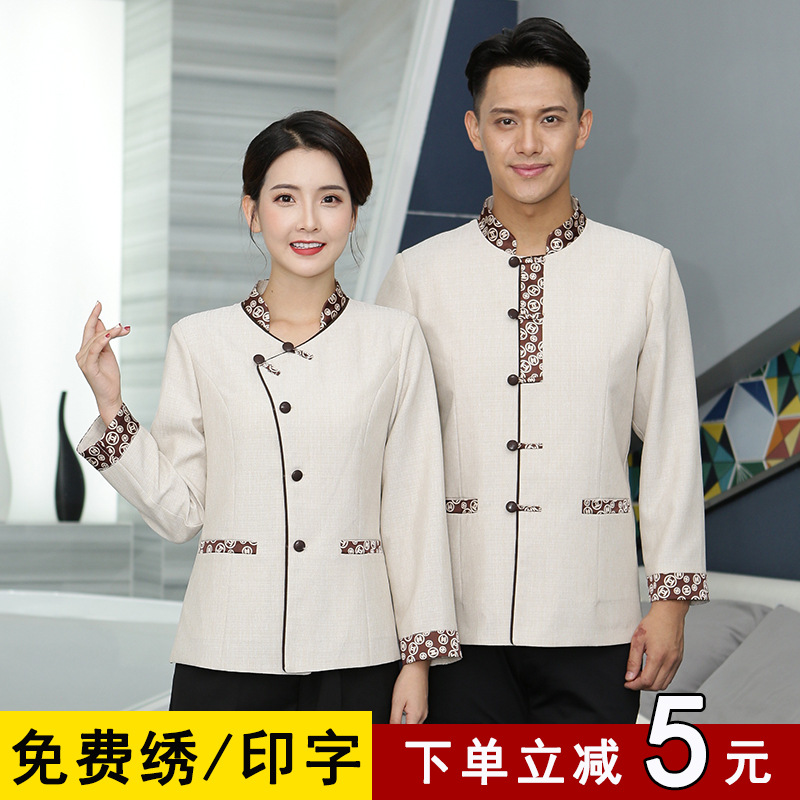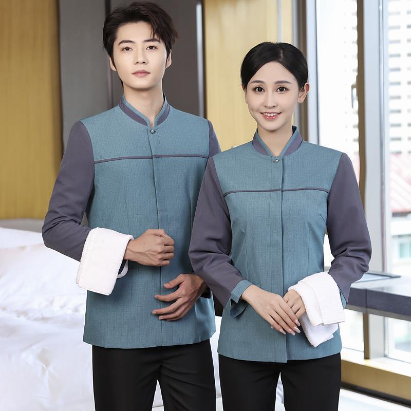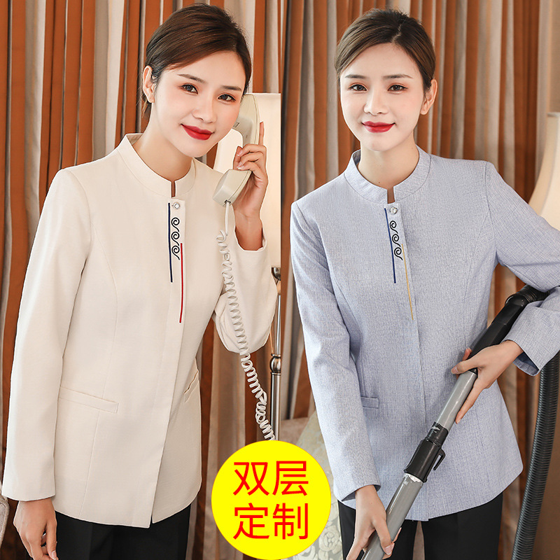 Pakaian lengan panjang untuk membersihkan pakaian musim gugur dan musim dingin pembersih kamar hotel pakaian kerja atasan properti bibi seragam pakaian kerja