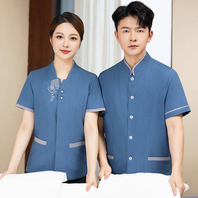 Hotel Cina gaya membersihkan pakaian kerja lengan pendek ruang tamu hotel mal belanja properti membersihkan pakaian kerja pakaian pria dan wanita dicetak kata-kata bordir