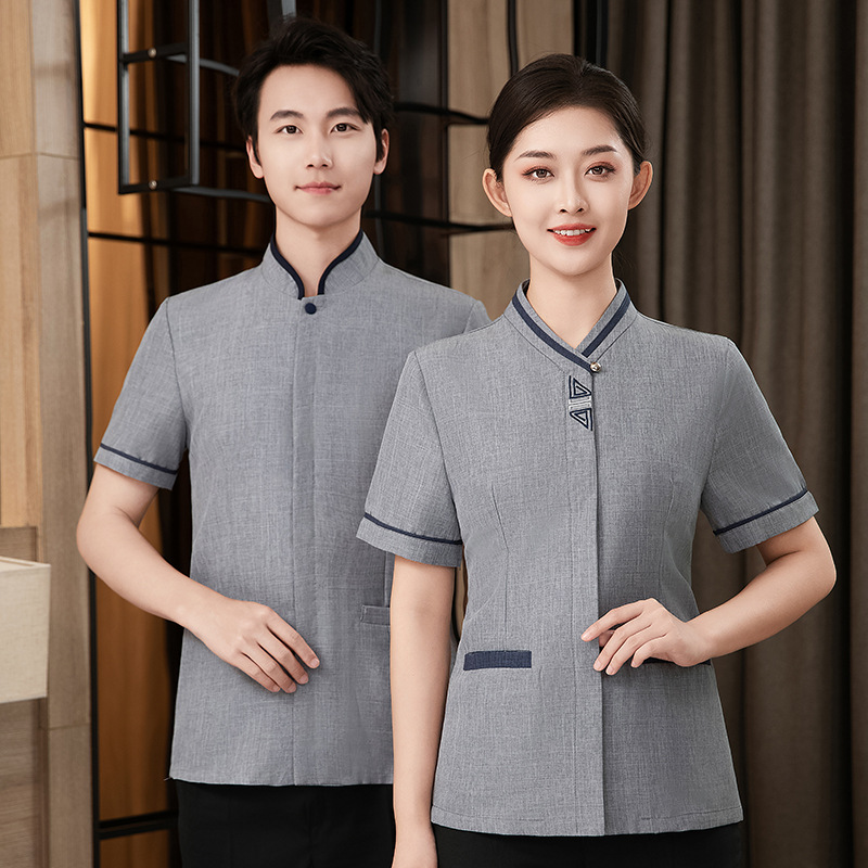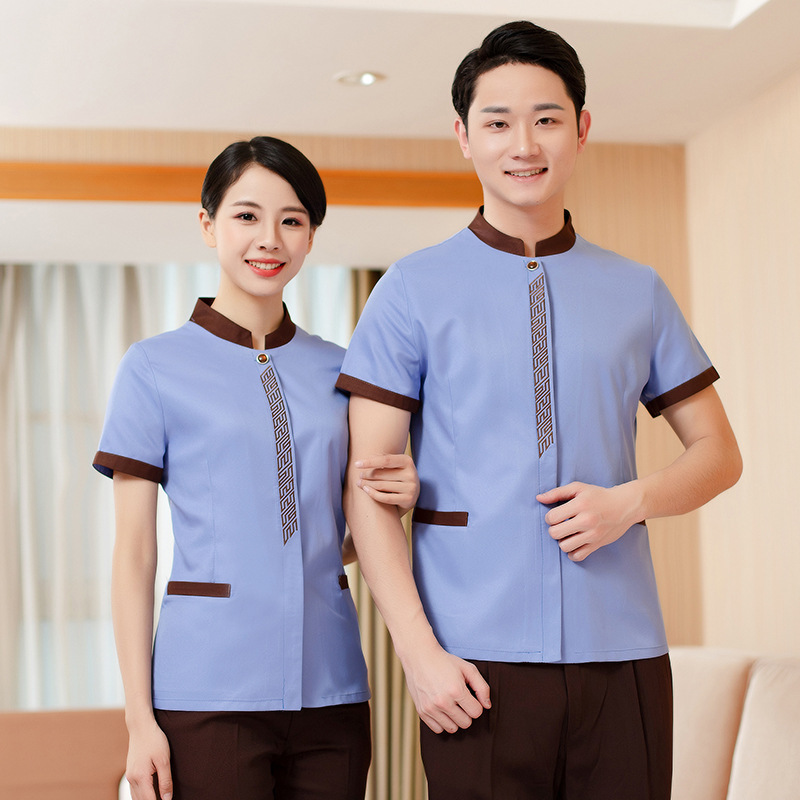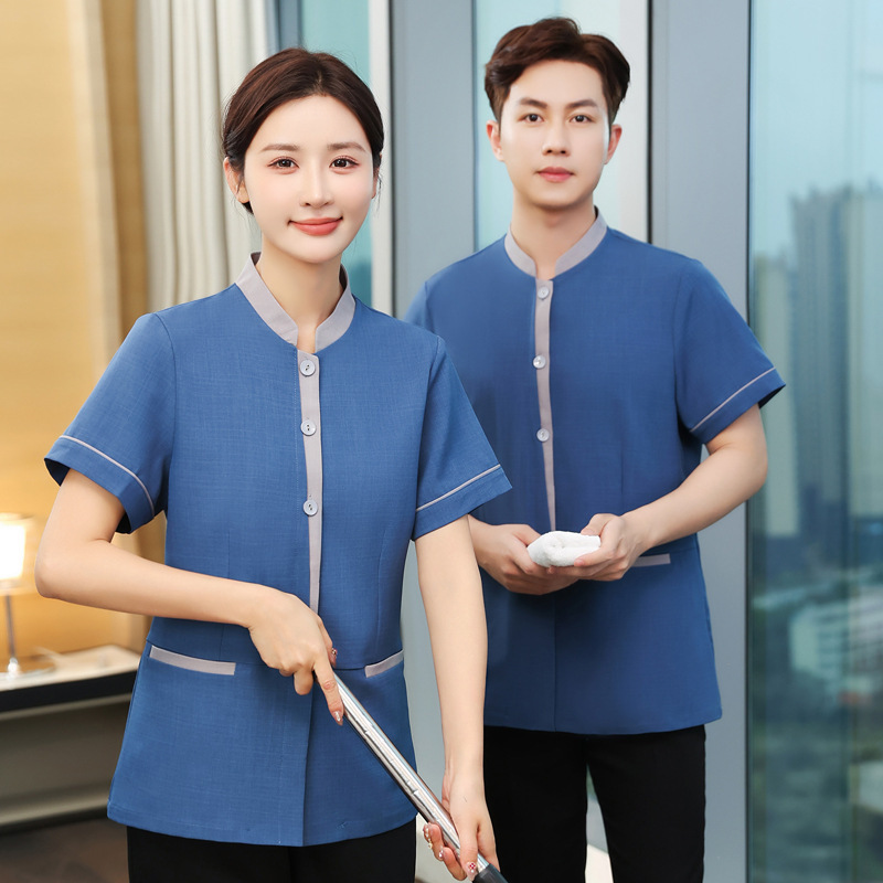 Hotel pakaian kerja pembersih leher bulat pria dan wanita properti lengan pendek pakaian pembersih kamar hotel musim panas pakaian Cina