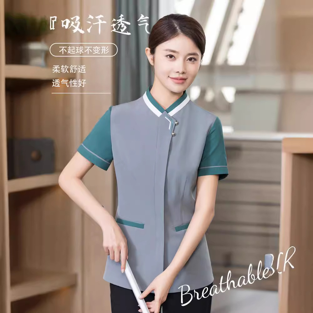 Pakaian Kerja Pembersih Kamar Lengan Pendek Rumah Tangga Wanita Kantor Penjualan Rumah Tangga Tempat Belanja Pakaian Pembersih Gaya Tiongkok Pakaian Musim Panas
