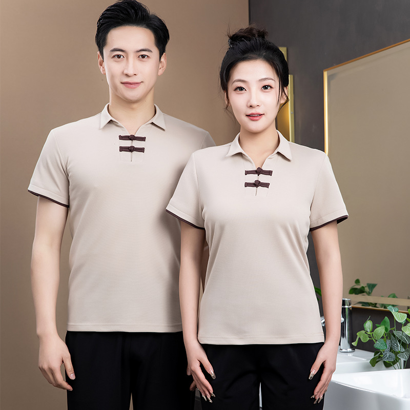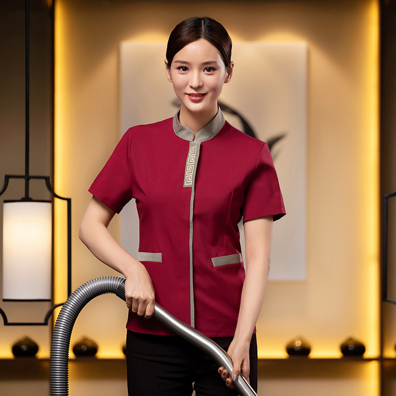 Pakaian kerja bibi pembersih kelas atas musim panas T-shirt lengan pendek pembersih lantai mall klub Cina properti lengan pendek