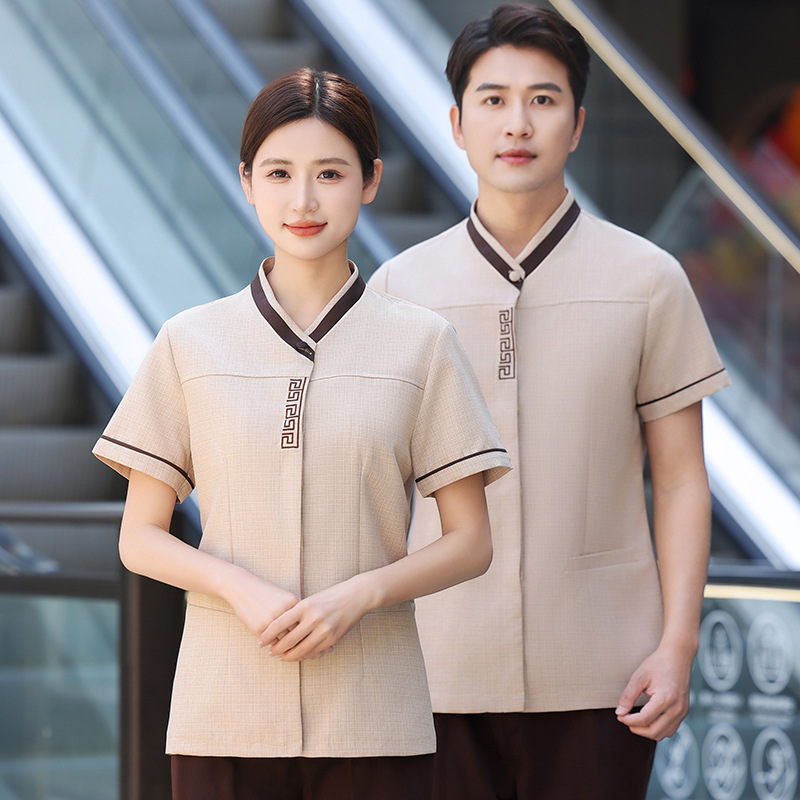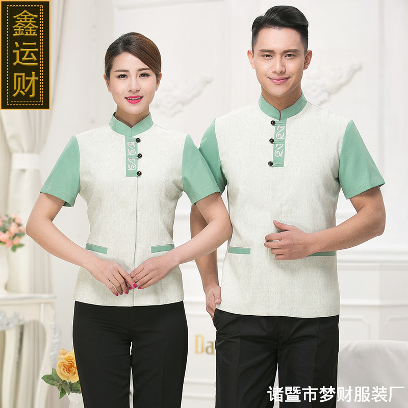 Pakaian pembersih Hotel lengan pendek setelan pembersih properti bibi pakaian kerja musim panas ruang tamu PA pakaian kerja seragam pria dan wanita