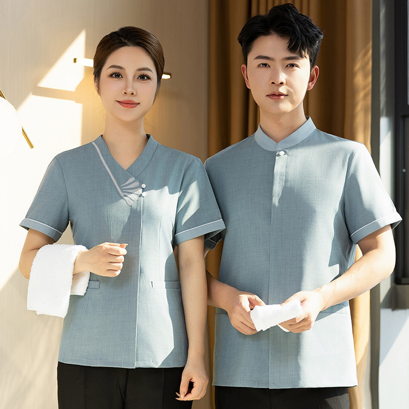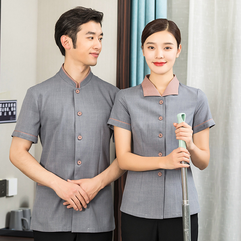 Pakaian pembersih Hotel lengan pendek pakaian musim panas pembersih hotel kamar tamu pakaian kerja pembersih Properti PA pakaian kerja pembersih