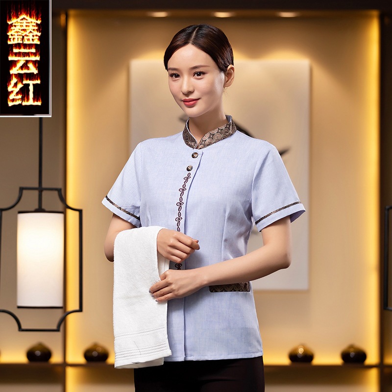 Pakaian kerja pembersih ruangan tamu gaya Tiongkok pembersih properti Hotel wanita lengan pendek musim panas Bibi paservice ukuran plus