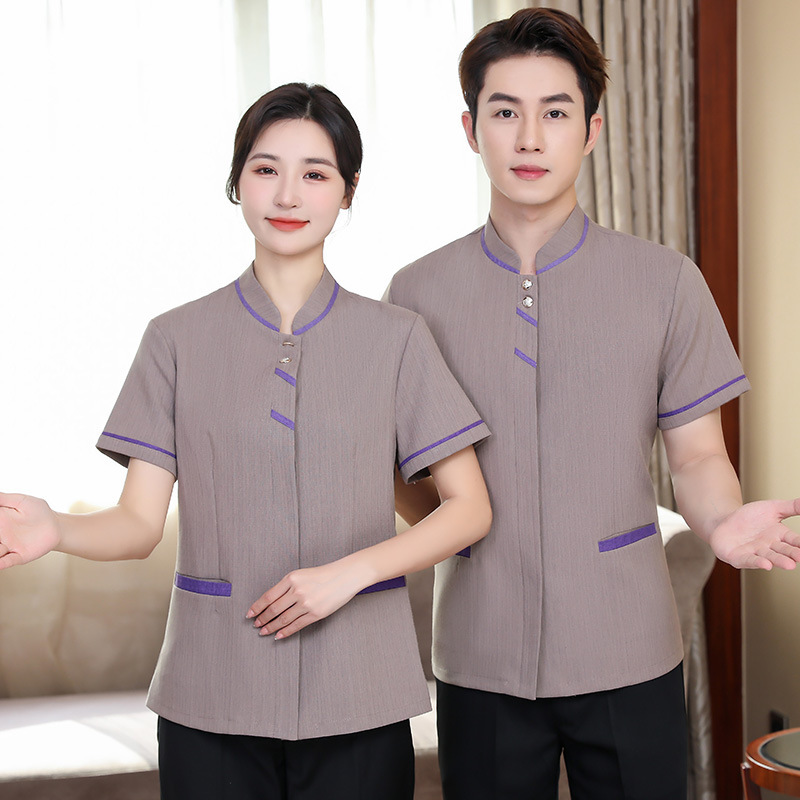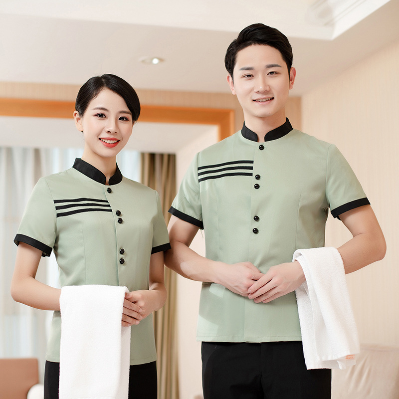 Pakaian kerja pembersih hotel musim panas, lengan pendek seragam kerja pembersih rumah sakit, properti restoran hotel, pakaian kerja pembersih