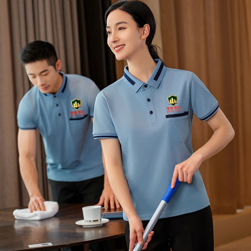T-shirt lengan pendek baju kerja kebersihan T-shirt Musim Panas terbaru seragam bibi properti komunitas petugas layanan hotel pria dan wanita