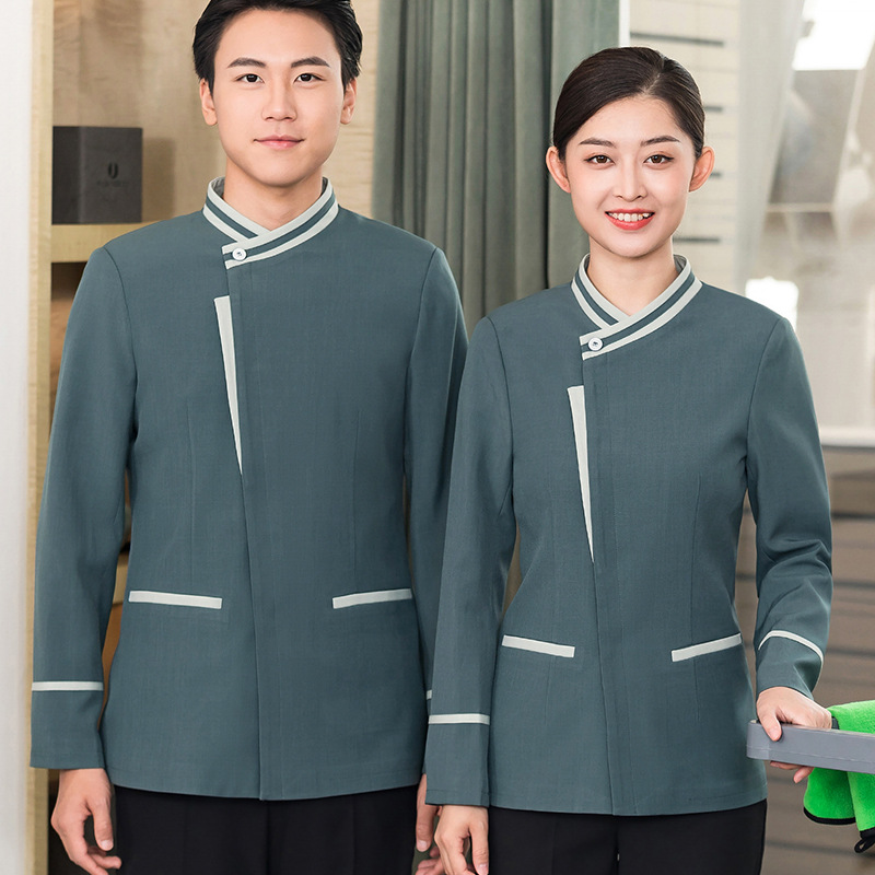 Pakaian pembersih kerja pria dan wanita, pakaian membersihkan properti kamar tamu hotel lengan panjang musim semi, musim gugur dan musim dingin