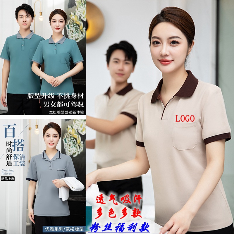 Pembersih Hotel musim panas overall pria Hotel properti domestik Room Shopping Mall bibi kustom logo lengan pendek