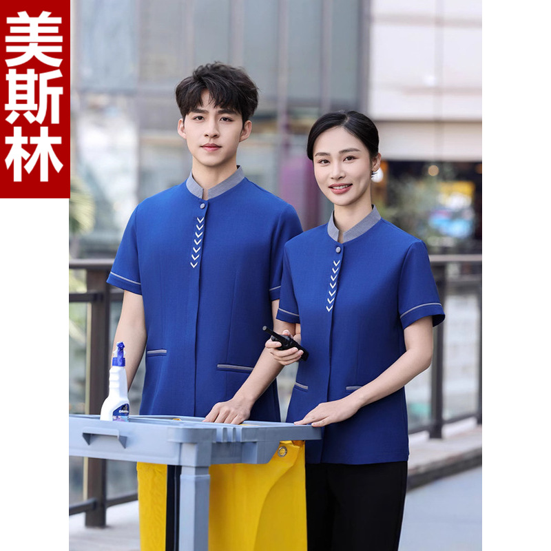 Pakaian Kerja Pembersih Properti Pakaian Kerja Wanita Musim Panas Lengan Pendek Kamar Hotel Abu-abu Rumah Tangga Pusat Perbelanjaan Bibi Ukuran Besar Biru