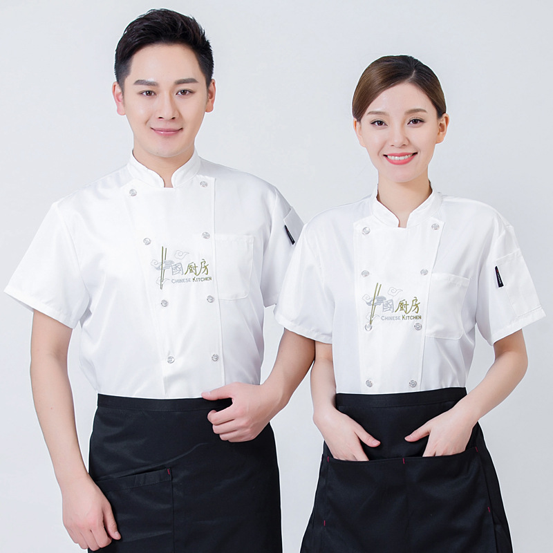 Baju kerja koki lengan pendek pria, tipis bernapas hotel kantin baju kerja restoran dapur memanggang wanita lengan panjang