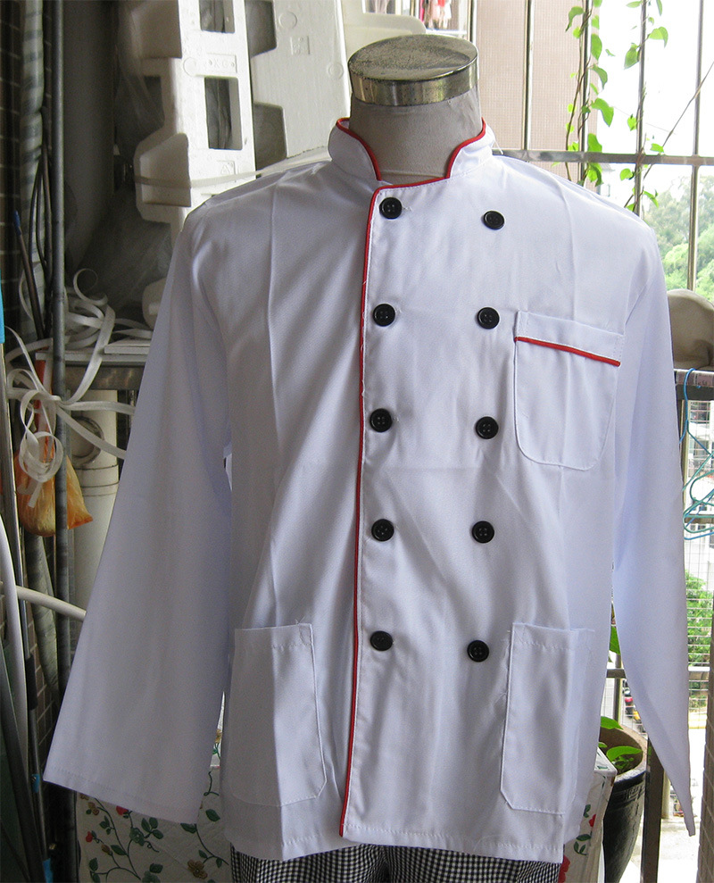 Black Edge hitam lengan panjang, tiga saku poliester katun pakaian kerja dapur pakaian kerja dapur dapat dibordir logo