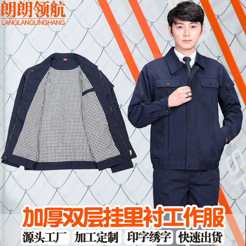 Pakaian kerja bengkel, atasan lengan panjang dan musim gugur dan musim dingin lapisan ganda dengan lapisan tebal perlindungan tenaga kerja pabrik tahan aus