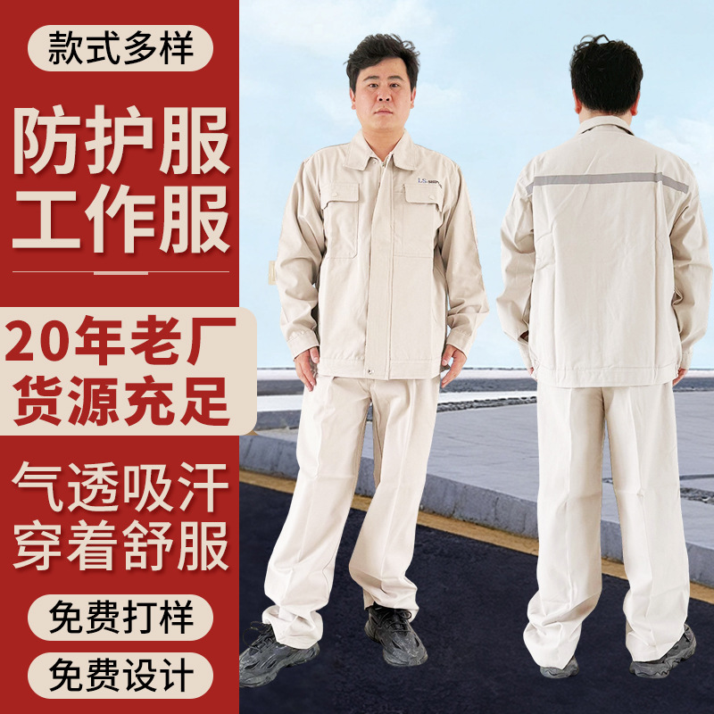 Pakaian Kerja Katun Murni Set Model Musim Semi dan Musim Gugur Pakaian Las Ekstra Tebal Pria Pakaian Kerja Toko Perbaikan Mesin Grosir Pakaian Kerja Dapat Cetak