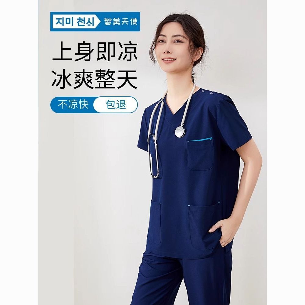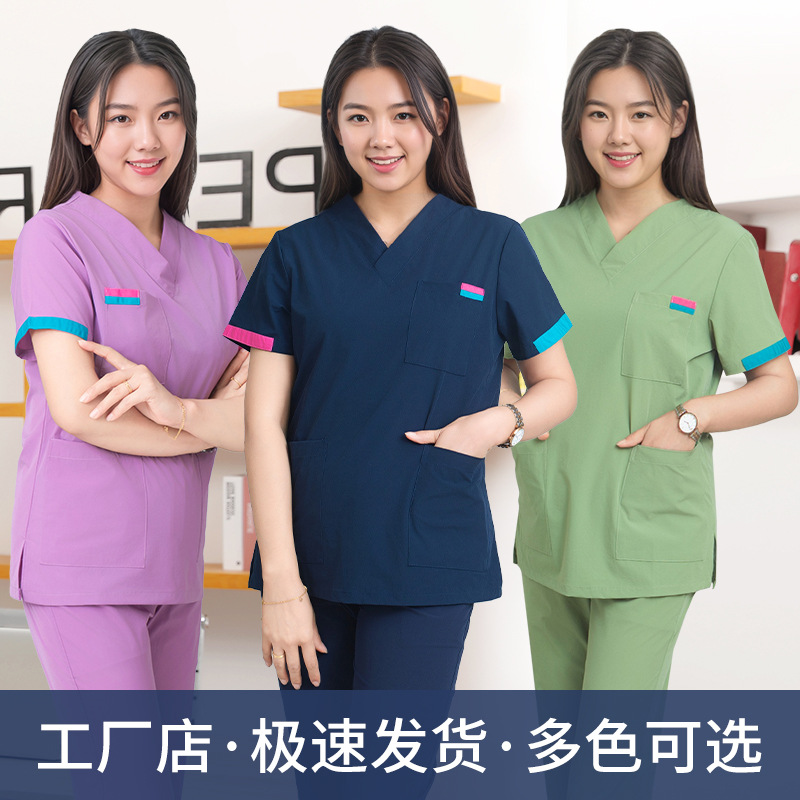 Pakaian Cuci Tangan Wanita Elastis Cepat Kering Gigi Mulut Lengan Pendek Rumah Sakit Hewan Peliharaan Model Tipis Sikat Tangan Kerja Dokter Musim Panas