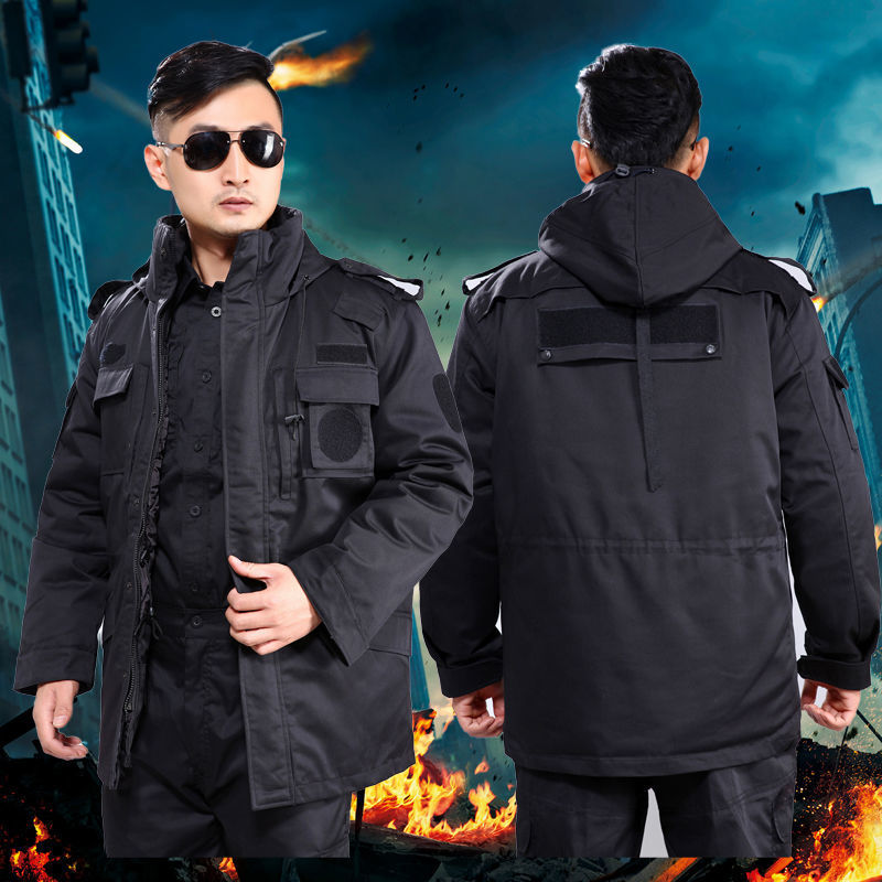 Pabrik grosir mantel layanan khusus hitam pelatihan keamanan mantel berlapis katun tahan dingin mantel berlapis kapas tempur khusus mantel latihan khusus musim dingin pria kerja