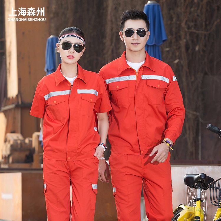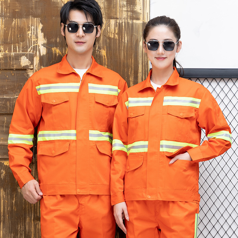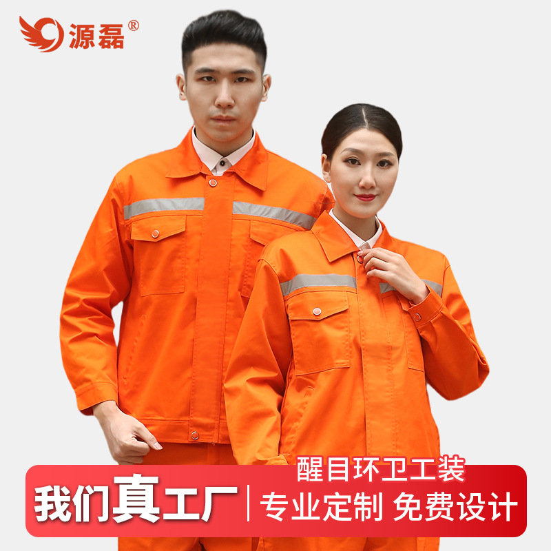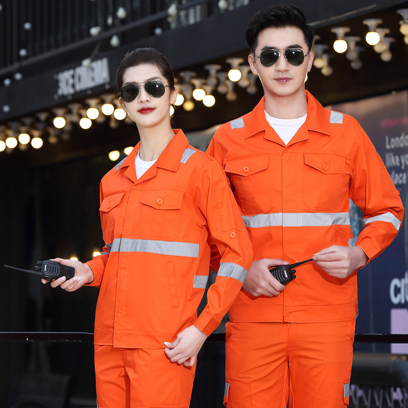 Setelan pakaian kerja pria dan wanita, musim panas lengan panjang, pria dan wanita, oranye, strip reflektif, pemeliharaan jalan, sanitasi, kustomisasi pabrik pakaian