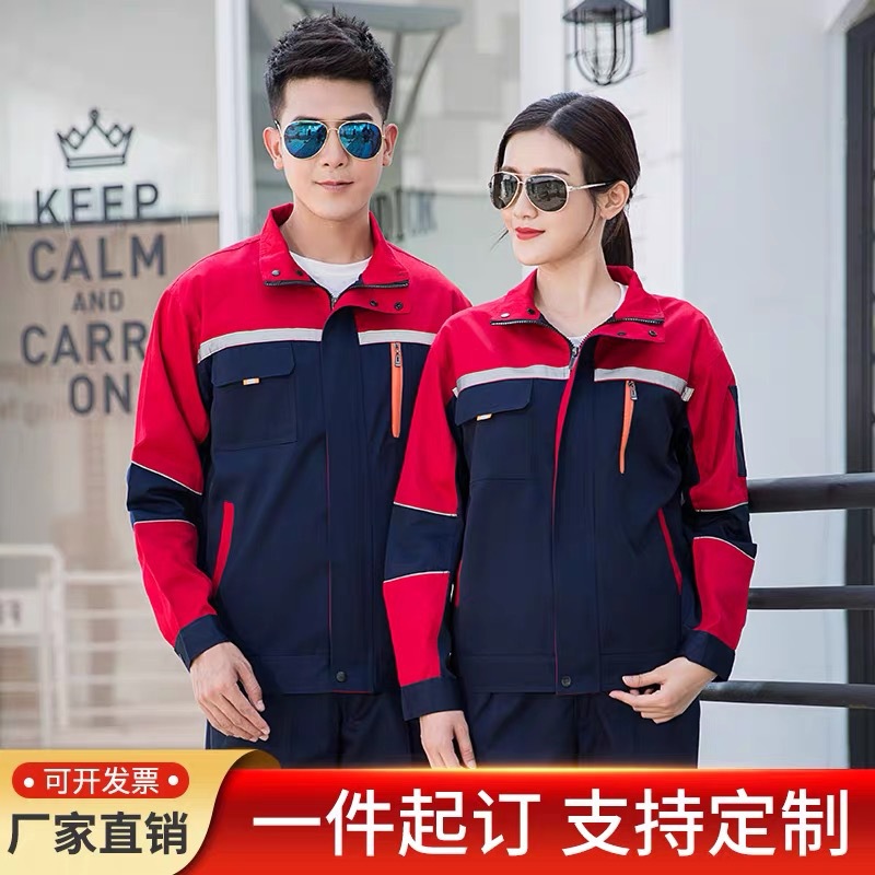 Setelan Baju Kerja Lengan Panjang Pria Pakaian Pabrik Tahan Aus Musim Semi dan Musim Gugur Pakaian Pekerja Perbaikan Otomatis Pakaian Pelepas Kerja Pembersihan Properti Reflektif