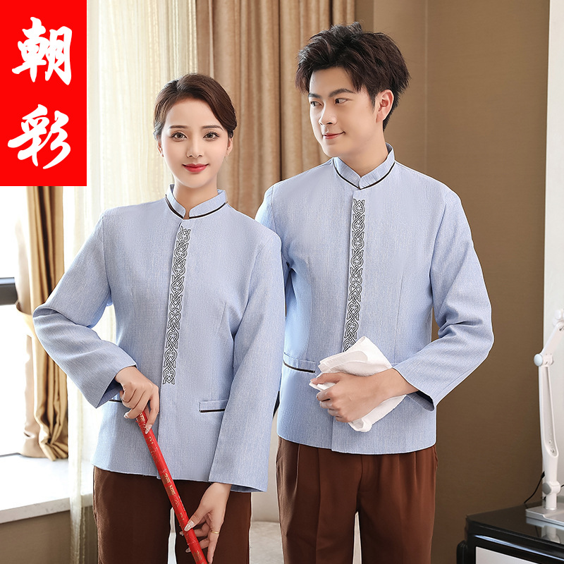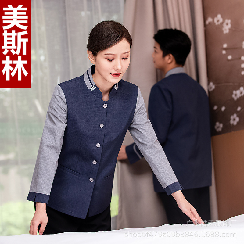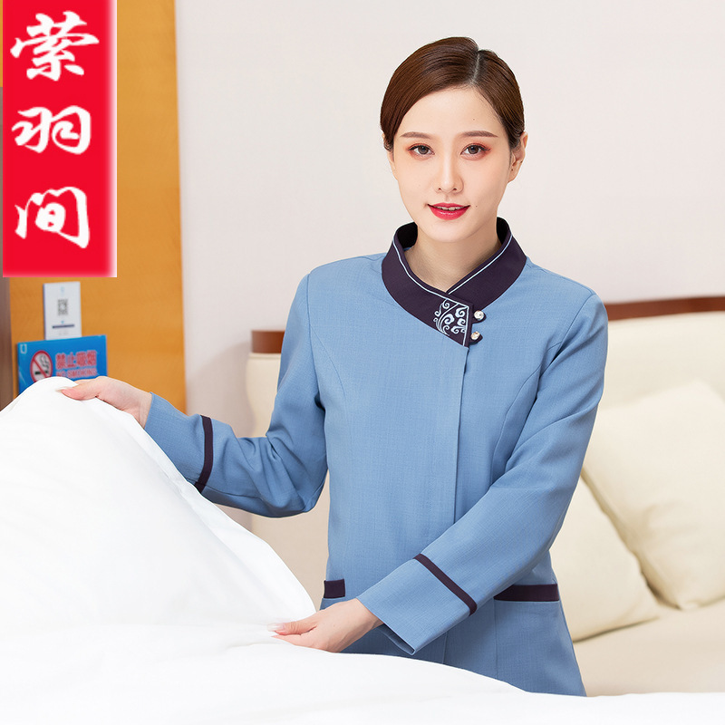 Pakaian pembersih lengan panjang, pakaian kerja pembersih ruang tamu hotel, properti seragam PA Cina musim gugur dan musim dingin
