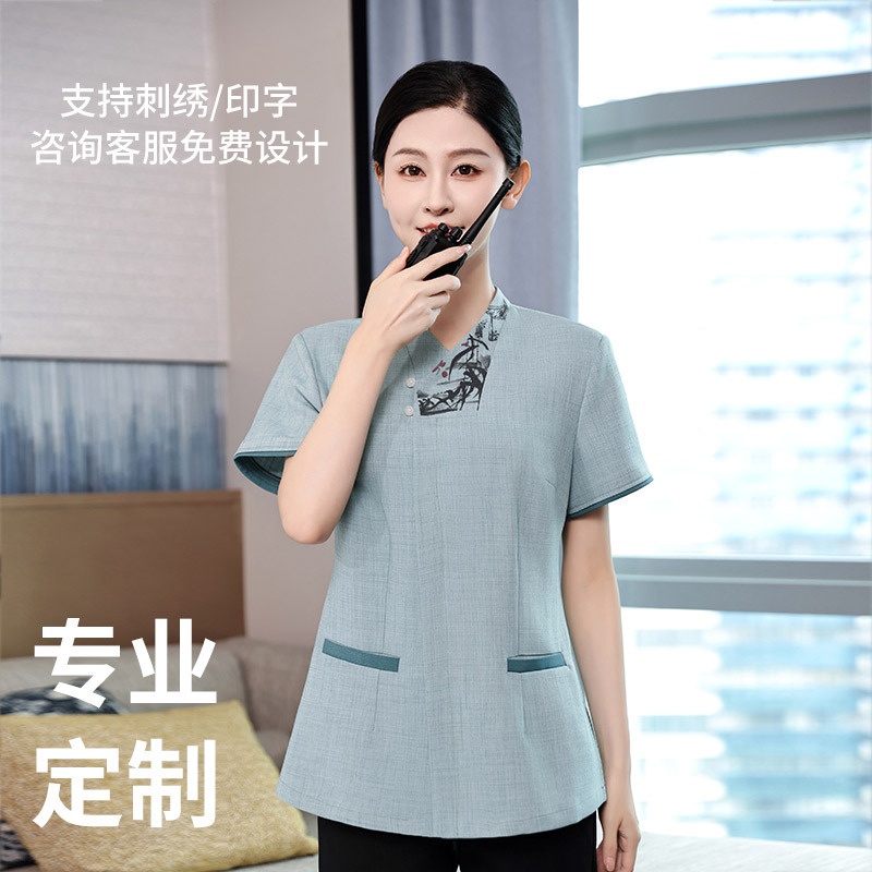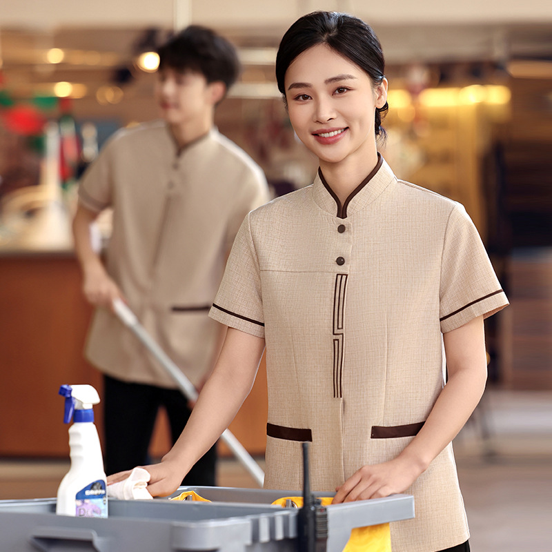 Properti rumah tangga, layanan Hotel, pakaian kerja wanita lengan pendek, pakaian pembersih hotel, pakaian kerja lengan pendek musim panas