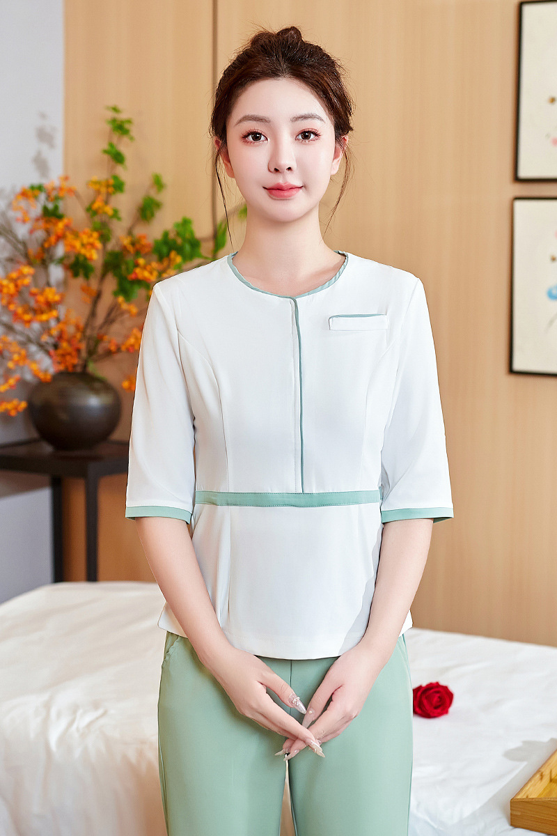 Setelan baju kerja salon kecantikan wanita, pakaian kerja teknisi kecantikan, pakaian sauna pijat kaki kelas atas