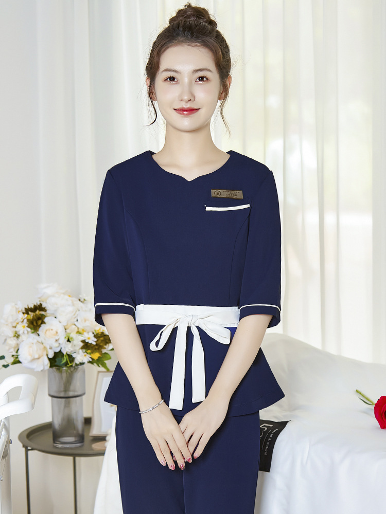 Pakaian Kerja Terapi Kepala Pedikur Klub Santai Teknisi Kecantikan Lengan Sedang Tujuh Poin Kecantikan Pusat Kesehatan Musim Semi dan Musim Panas Pakaian Kerja Wanita