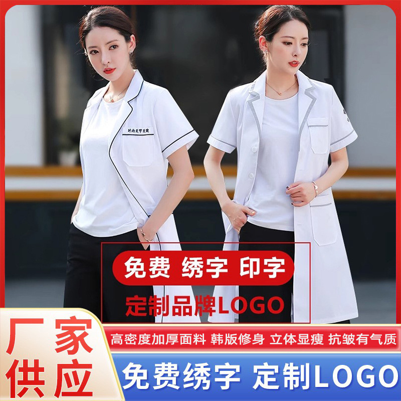 Overall salon kecantikan gaya Korea, baju salon kecantikan lengan panjang, gaun putih manajemen kulit lengan pendek, pusat kesehatan tato