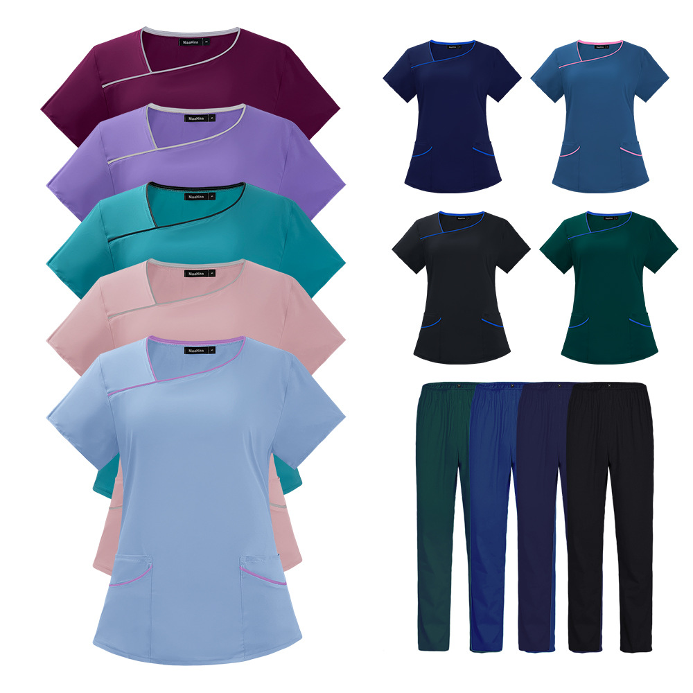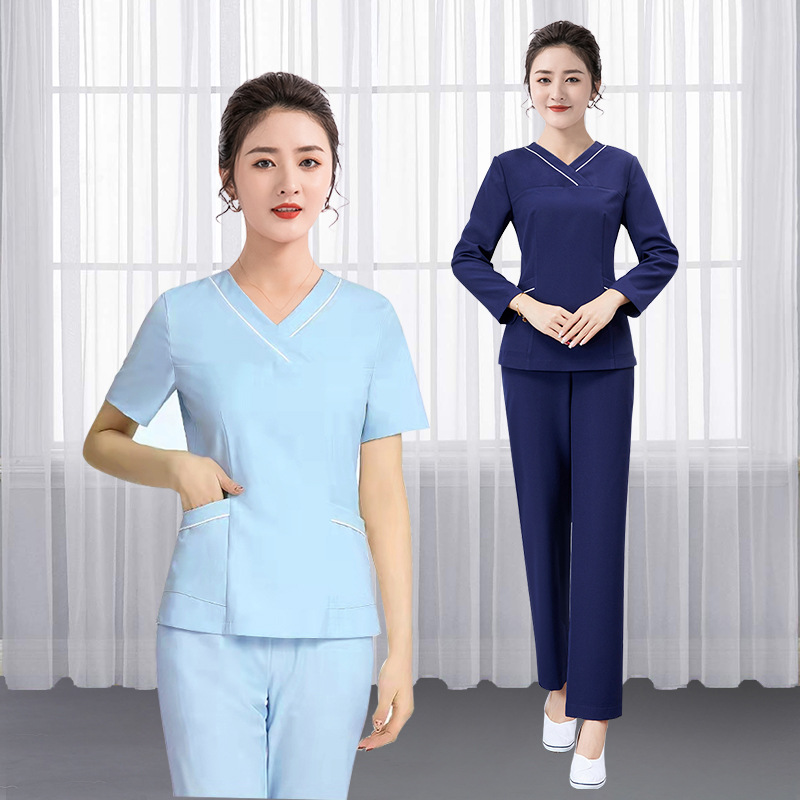Pakaian kerja salon kecantikan pakaian kerja pusat kesehatan pakaian kerja pusat kenyamanan musim semi dan musim gugur setengah lengan v-neck teknisi wanita