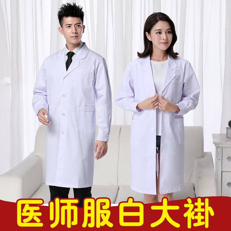 Pakaian dokter pria dan wanita, pakaian kedokteran lengan panjang gaun putih apotek ahli kecantikan baju kerja