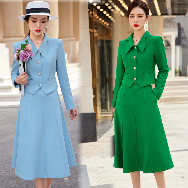 Toko perhiasan pakaian kerja gaun profesional musim gugur baru elegan retro seragam pramugari meja depan kerja ahli kecantikan