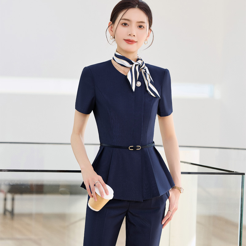 Setelan Pakaian Kerja Lengan Pendek Wanita Pakaian Kerja Manajer Hotel Model Tipis Musim Panas Pakaian Kerja Ahli Kecantikan Toko Perhiasan