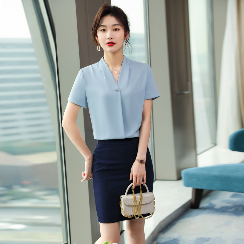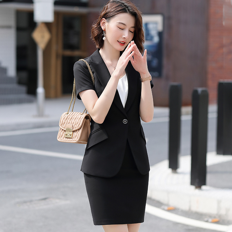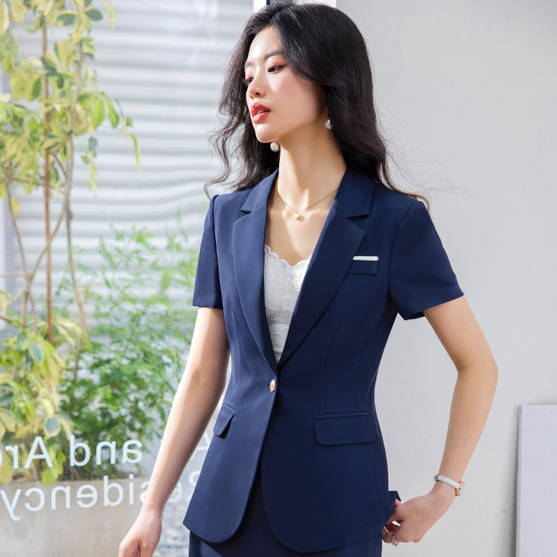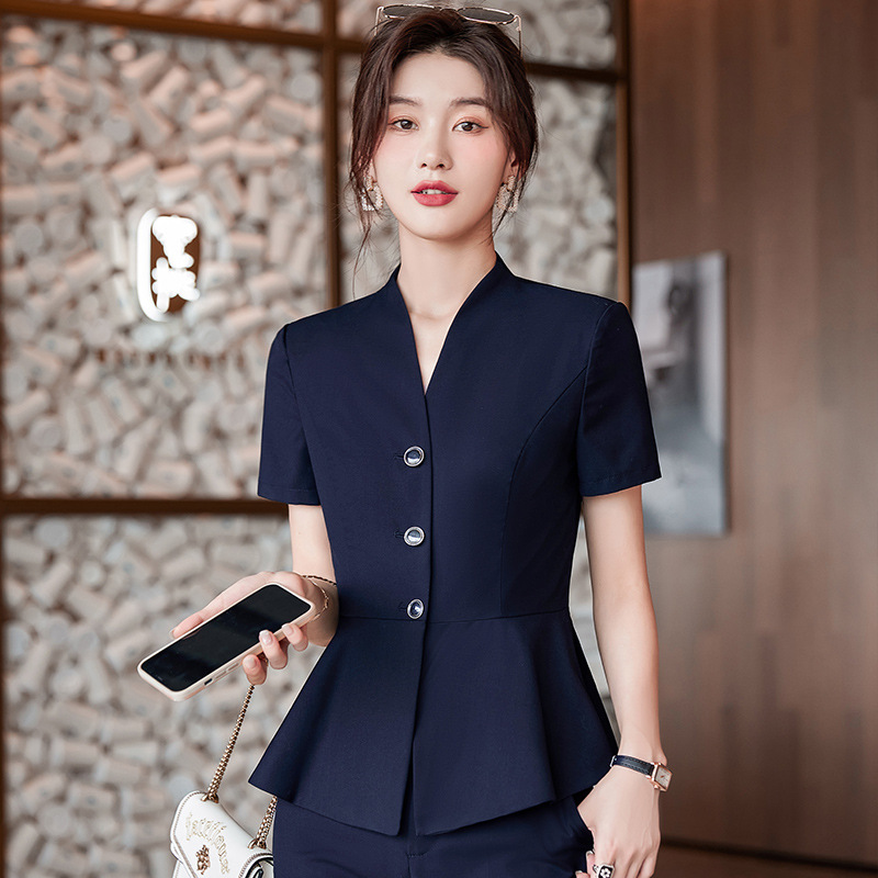 Pakaian bisnis setelan lengan pendek pakaian kerja meja depan hotel wanita pakaian kerja ahli medis pakaian kerja departemen penjualan perhiasan toko baju kerja