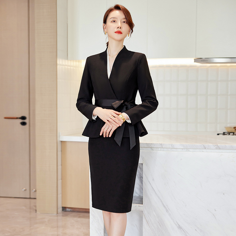 Diskon besar Amazon setelan profesional musim gugur dan musim dingin setelan lengan panjang seragam hotel pakaian kerja ahli kecantikan rok wanita