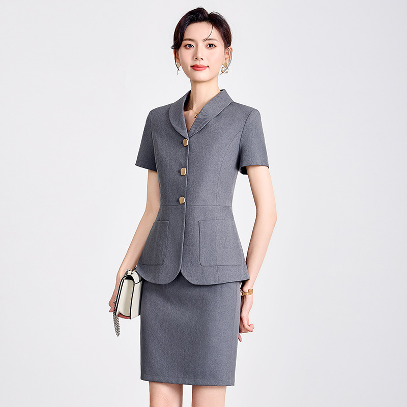 Pakaian kerja abu-abu lengan pendek rok wanita pakaian kerja rok musim panas mode kecantikan hotel meja depan perhiasan toko emas pakaian formal