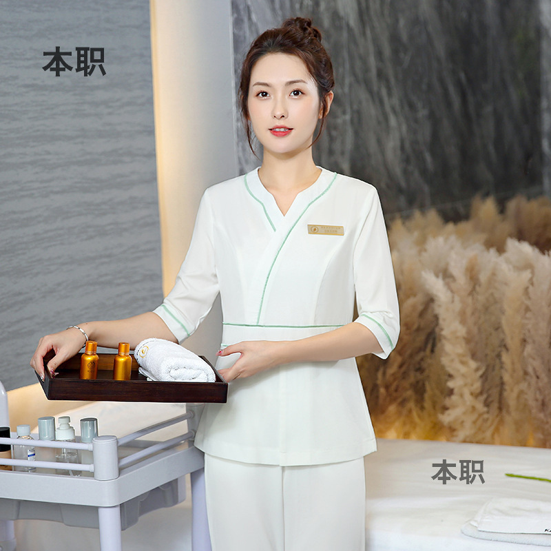 Baju salon kecantikan wanita, baju salon kecantikan SPA Kesehatan, pakaian teknisi mandi kaki, lengan setengah slim-fit, musim semi dan musim panas baru 2019