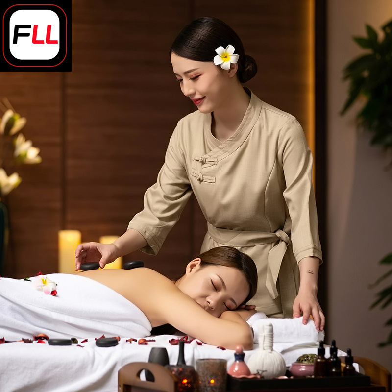 Seragam kerja teknisi pijat kaki ala Thailand A2025 untuk wanita, cocok untuk klub kesehatan, SPA, salon kecantikan, dan keperluan kerja ahli kecantikan.