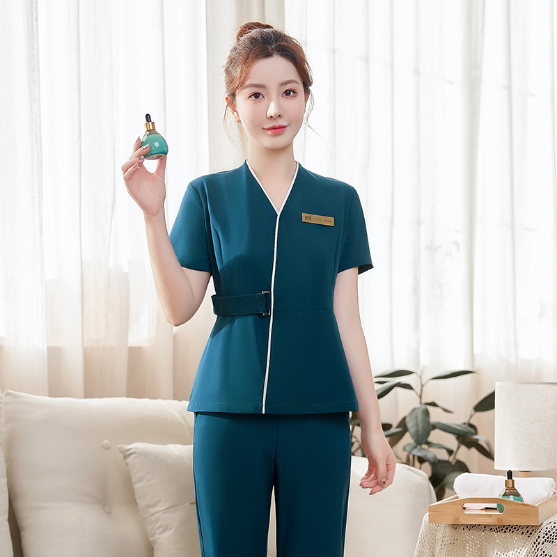 Seragam Teknisi Mandi Kaki Baru Pusat Kesehatan Pijat Kaki Pakaian Kerja Kecantikan Setelan Lengan Pendek Pijat Spa Wanita Slim Fit 781