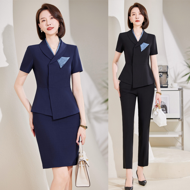 Gaun profesional hotel wanita meja depan fashion temperamen kecantikan perhiasan host pakaian kerja formal rok lengan pendek