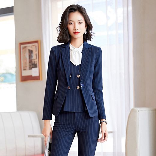 Setelan profesional musim gugur dan musim dingin wanita high-end elegan bergaris setelan rompi hotel meja depan salon kecantikan overall