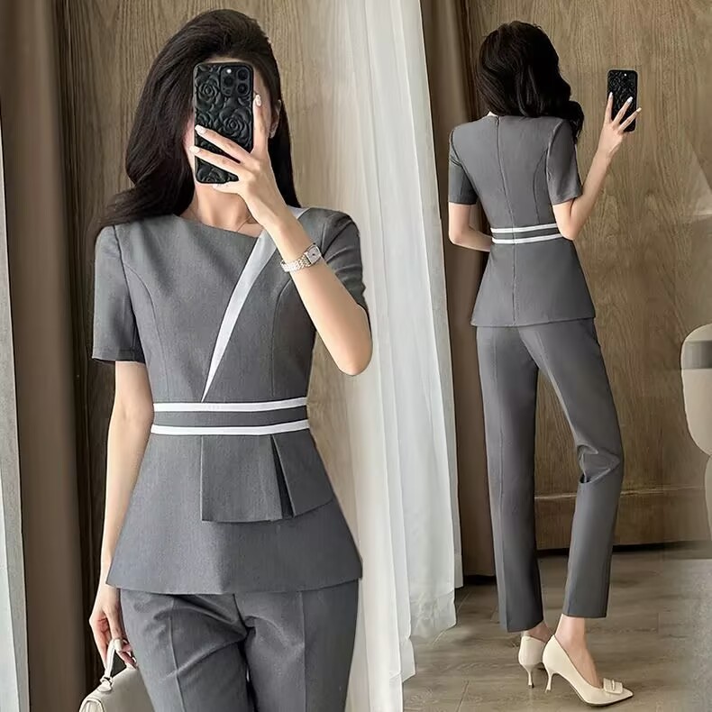 Pakaian Profesional Kelas Atas Elegan Gaya Korea Lengan Pendek Musim Panas Pakaian Formal Wanita Pakaian Formal Toko Perhiasan Kecantikan Hotel Pakaian Kerja