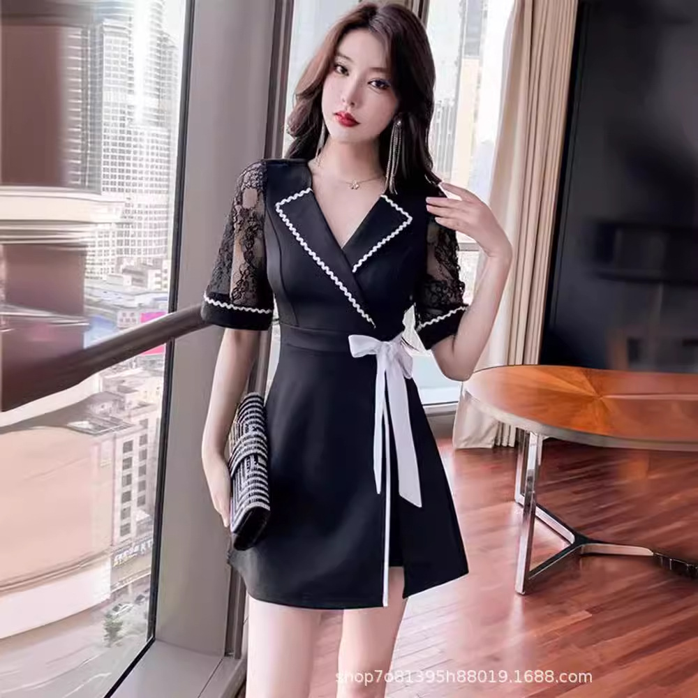 Gaun Cheongsam Modifikasi Model Baru 2025 Pakaian Kerja Pijat Sauna Renda Warna Hitam Musim Semi Musim Panas Terlihat Langsing Slim-1516