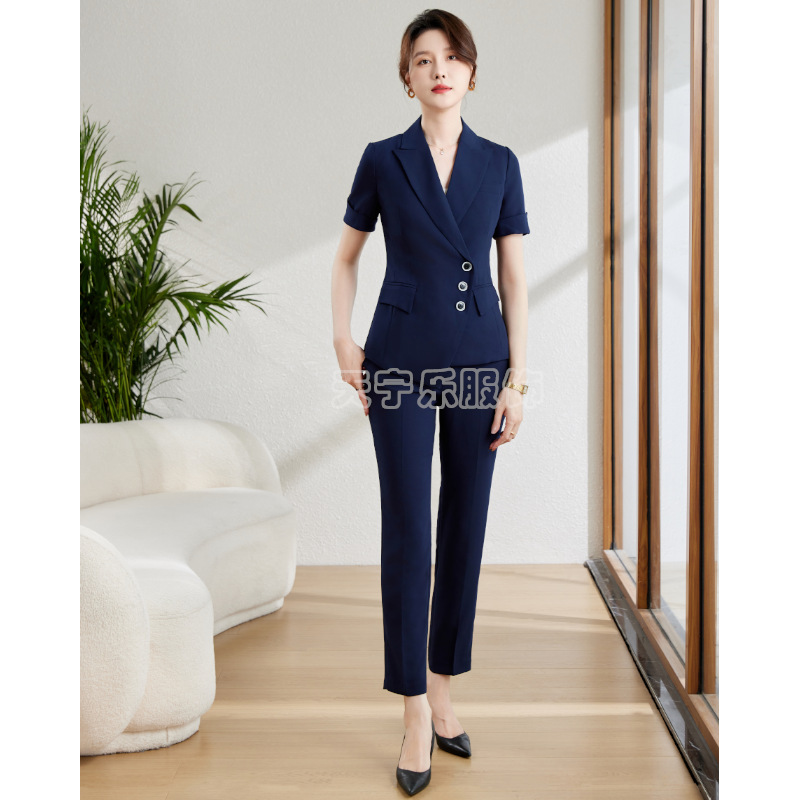 Setelan Jas Lengan Pendek Profesional Pakaian Kerja Wanita Toko Perhiasan Meja Depan Hotel Kecantikan Model Baru Musim Panas
