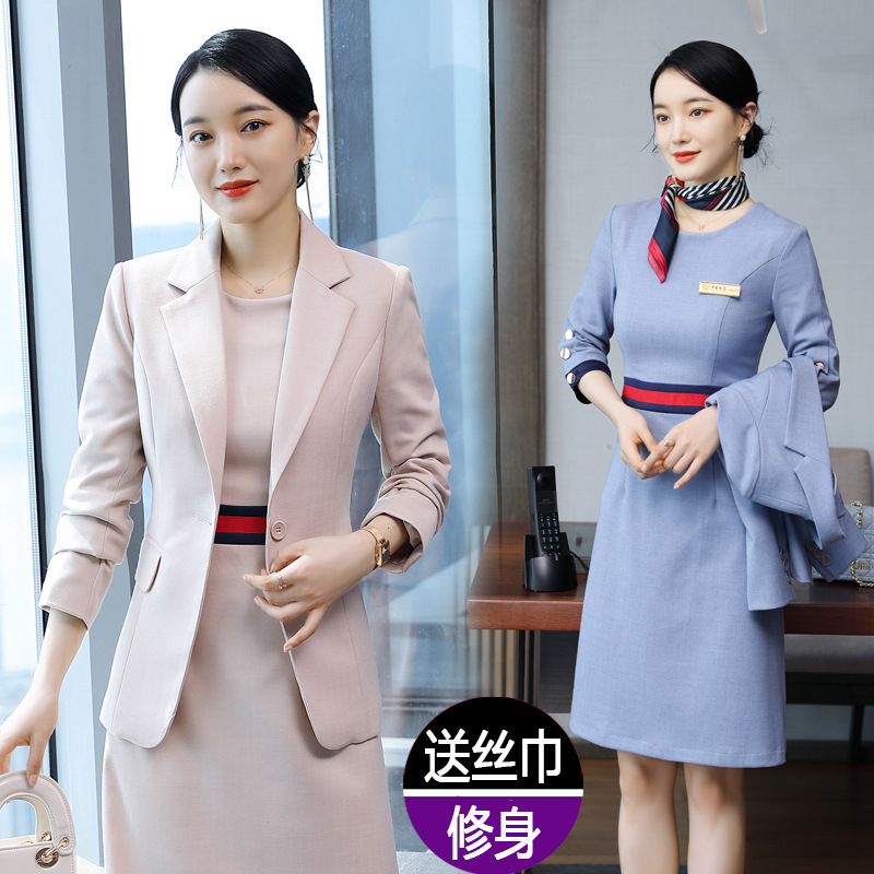Pakaian kerja Hotel baru meja depan wanita untuk kasir setelan lengan panjang manajer ahli kecantikan setelan profesional musim gugur dan musim dingin