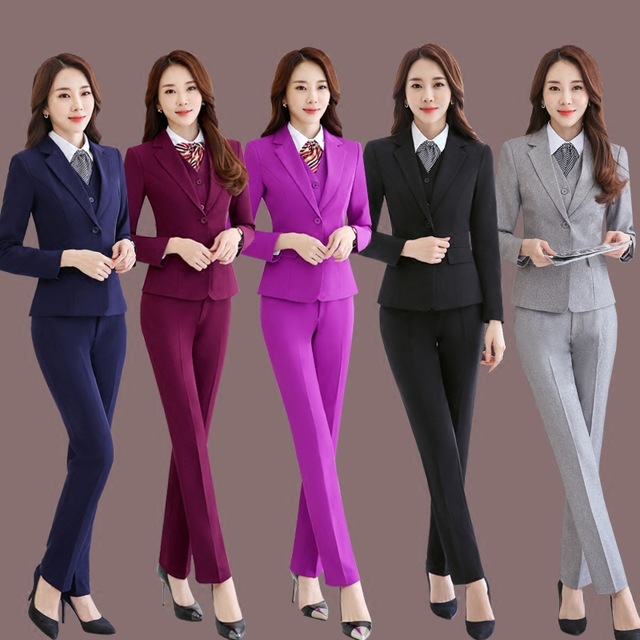 Seragam pramugari setelan profesional rompi baru wanita rompi baru tiga potong pakaian kerja meja depan hotel kecantikan lengan panjang slim-fit