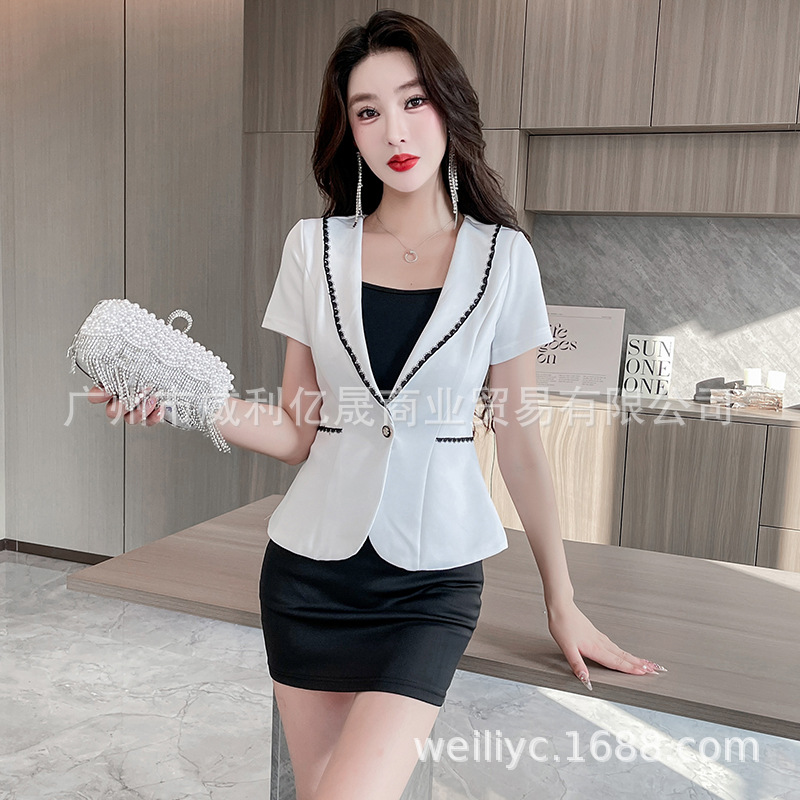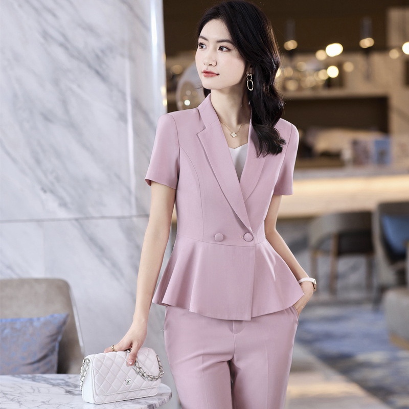 Setelan lengan pendek profesional setelan wanita 2023 jas gaya Salon kecantikan musim panas setelan temperamen jaket pakaian formal overall