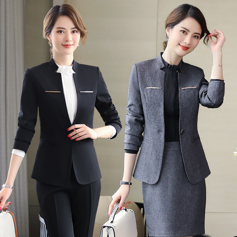 Setelan pakaian bisnis untuk wanita, blazer lengan panjang musim semi dan musim gugur, pakaian kerja meja depan manajer hotel, seragam kerja ahli kecantikan resepsionis, modis.