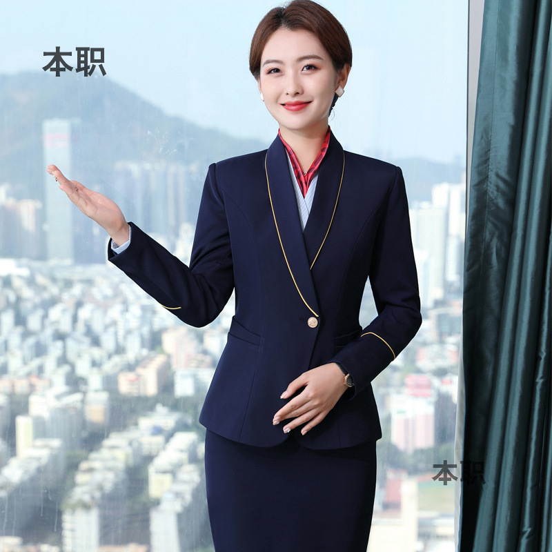 Baju seragam pramugari rel kecepatan tinggi, pakaian kerja profesional wanita, baju pramugari mode temperamen hotel, baju kerja meja depan musim gugur dan musim dingin