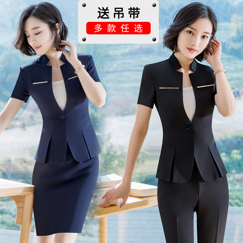 Setelan pakaian bisnis lengan pendek setelan wanita musim panas hotel restoran meja depan manajer kerja keseluruhan ahli kecantikan