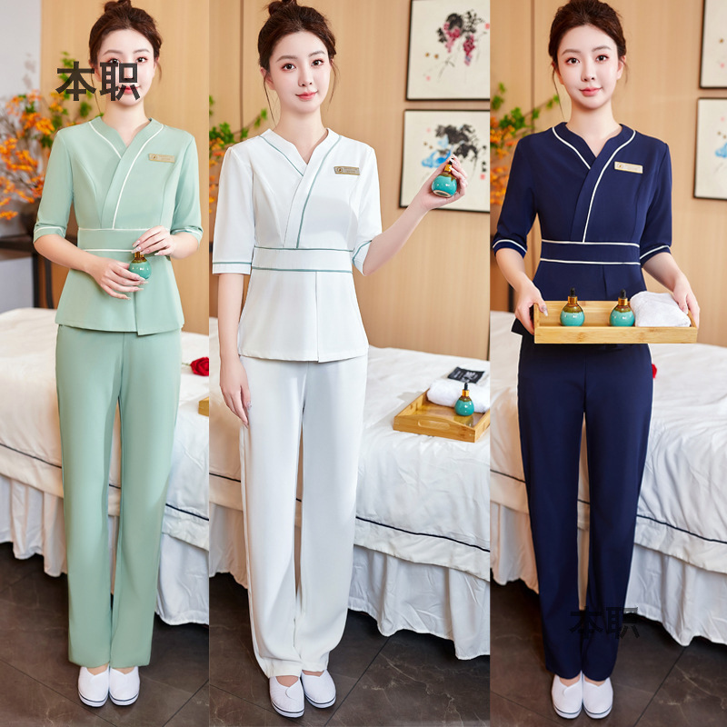 Klub kecantikan pakaian kerja gaya Cina pedikur teknisi pakaian wanita pijat Sauna mandi kaki pijat pakaian kerja setelan wanita